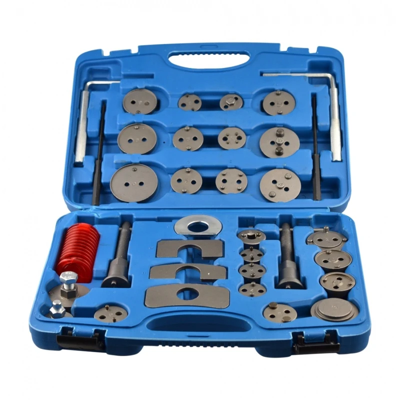 35pc Set Kit Reposicionador Pistones De Freno on universaalne tööriist, mis on loodud tagumiste ketaspidurite kolbide ja piduriklotside vahetamise lihtsustamiseks käsitsi juhitava seisupiduriga (mitte elektroonilisega) piduritel. See komplekt sobib nii professionaalsetele mehaanikutele kui ka autohoolduse harrastajatele, kes otsivad terviklikku ja tõhusat lahendust.