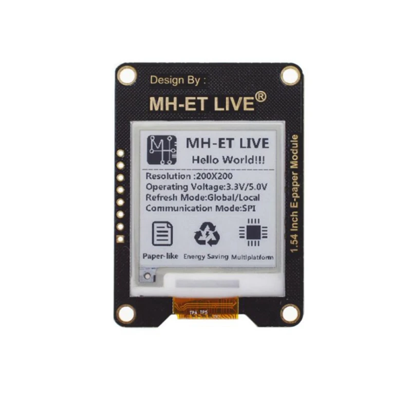 1.54-tolline SPI-liidesega e-paberi moodul on e-tindiekraan (ePaper/eInk), mis on loodud selgeks ja tõhusaks kuvamiseks elektroonikaprojektides. See moodul ühildub populaarsete platvormidega nagu Raspberry Pi, Arduino ja STM32, lihtsustades selle integreerimist erinevatesse arendustesse.