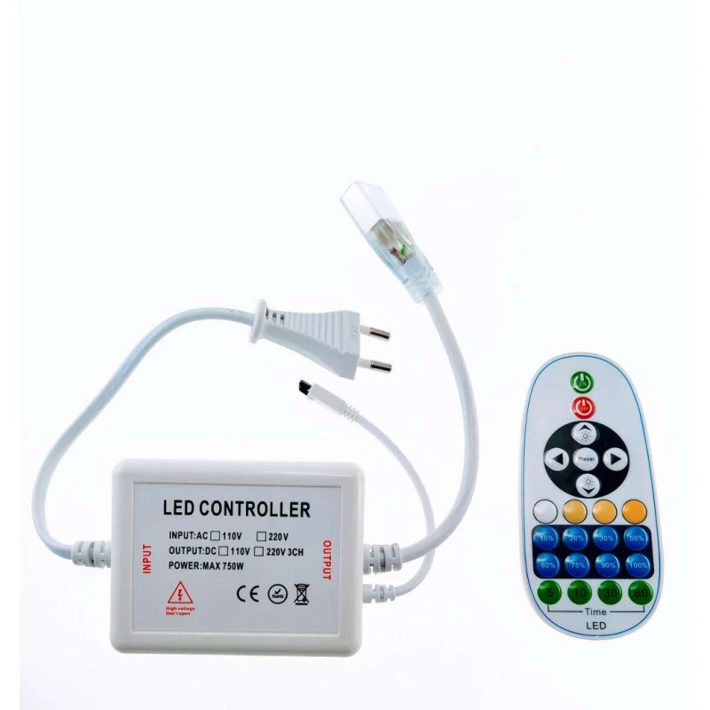 220V LED-riba dimmer kaugjuhtimispuldi ja valguse regulaatoriga