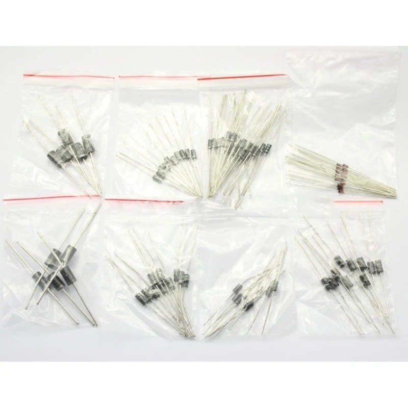 See dioodide komplekt pakub valikut 100 tk, mis on jaotatud 8 erineva mudeli vahel, hõlmates mõningaid elektroonikas enim kasutatavaid dioode. Iga mudel on eraldi lukuga kotis, et neid oleks lihtne hoiustada ja kasutada.