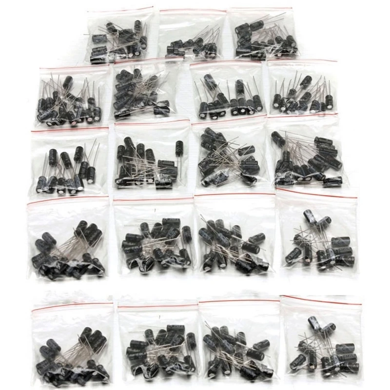 See komplekt sisaldab elektrolüütkondensaatoreid nimipingetega 6,3 V, 16 V, 25 V ja 50 V ning mahtuvustega alates 1 μF kuni 1000 μF. See sobib filtreerimisahelateks, lahtisidestamiseks, toiteplokkideks ja vigaste komponentide asendamiseks madala kuni keskmise pingega elektroonikaseadmetes.