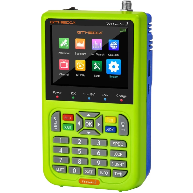 V8 Finder pakub digitaalset signaalimõõtmist, 3,5-tollist LCD-ekraani, DVB-S/S2 HD tuge ning täiustatud funktsioone nagu MPEG-2/4 dekodeerimine, kanalite redigeerimine ja tarkvarauuendus USB kaudu. See võimaldab antenne häälestada kiiremini ja täpsemalt kui analoogmudelid, mis näitavad tavaliselt ainult lihtsat signaalitaset ilma kvaliteedianalüüsita.