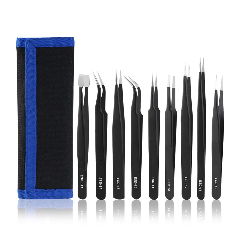 See komplekt pakub ESD-kaitset, mis eristab seda tavalistest pintsettidest, kuna aitab vältida staatilise elektri põhjustatud kahjustusi. Lisaks tagab roostevabast terasest konstruktsioon korrosioonikindluse ja suurema vastupidavuse kulumisele, erinevalt süsinikterasest või madalama kvaliteediga materjalidest valmistatud pintsettidest, mis võivad kiiremini roostetada ja täpsust kaotada.
