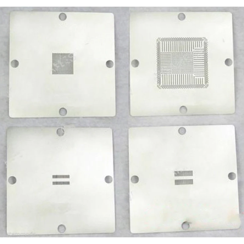 Pack 4 Stencils para PS4 90x90 MK-15 HT-90 kit dual on professionaalne lahendus tehnikutele ja harrastajatele, kes teevad PlayStation 4 konsoolide remonti. See šabloonide komplekt on loodud kindlate integraallülituste (IC) jootmisprotsessi lihtsustamiseks, tagades täpsuse ja kvaliteedi igas tööetapis.