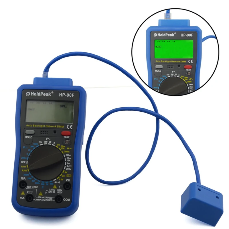 HoldPeak HP-90F digitaalne multimeeter RJ11 ja RJ45 testiga