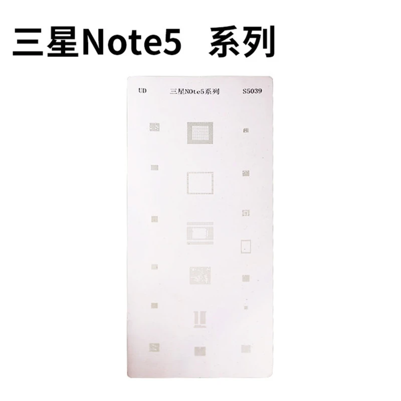 Seda stencil plaati kasutatakse peamiselt Samsung Note 5 BGA kiipide reballinguks. See võimaldab jootekuulid täpselt integraallülitustele kanda, lihtsustades telefoni emaplaadi vigaste või kahjustatud ühendustega seotud rikete parandamist.